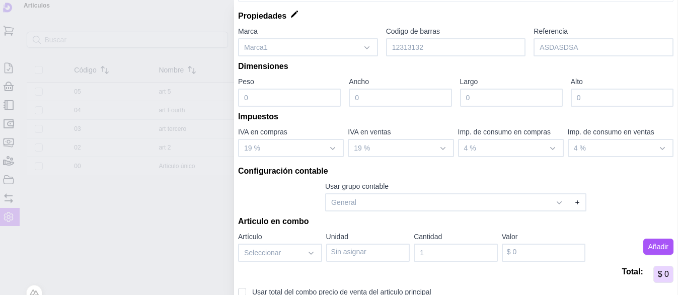 Si la empresa maneja combos de artículos, se pueden seleccionar los productos que lo componen y configurar: