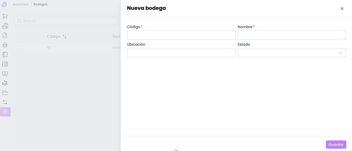Para crear una nueva bodega, haz clic en el botón Nuevo, ubicado en la parte superior derecha de la pantalla.